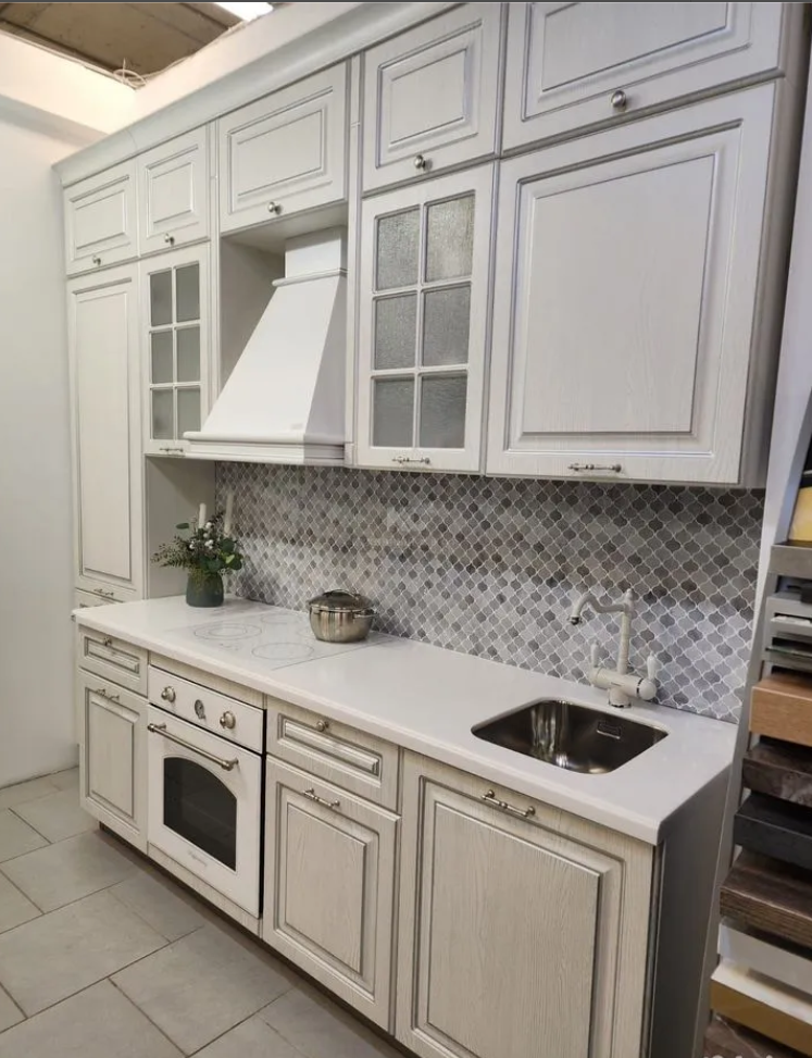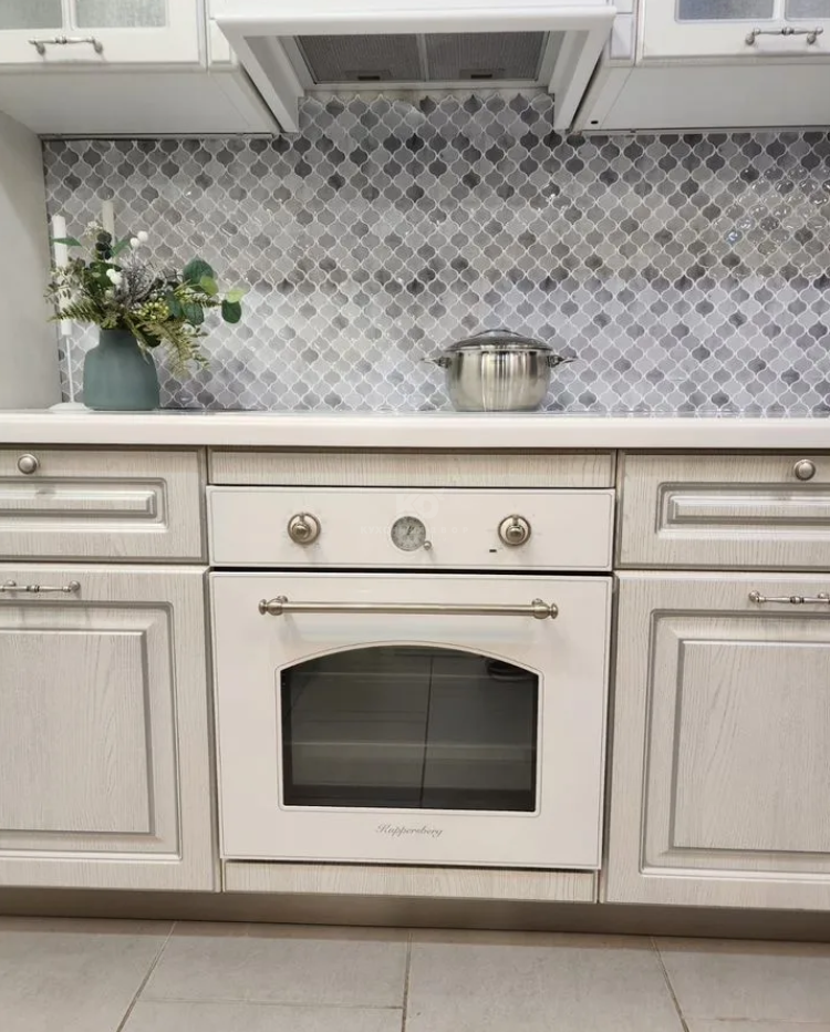 В подарок покупателю образца: духовой шкаф, мойка и смеситель.