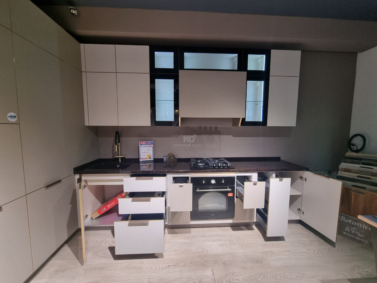 В стоимость входит: мебель, столешница, мойка, смеситель, подсветка.