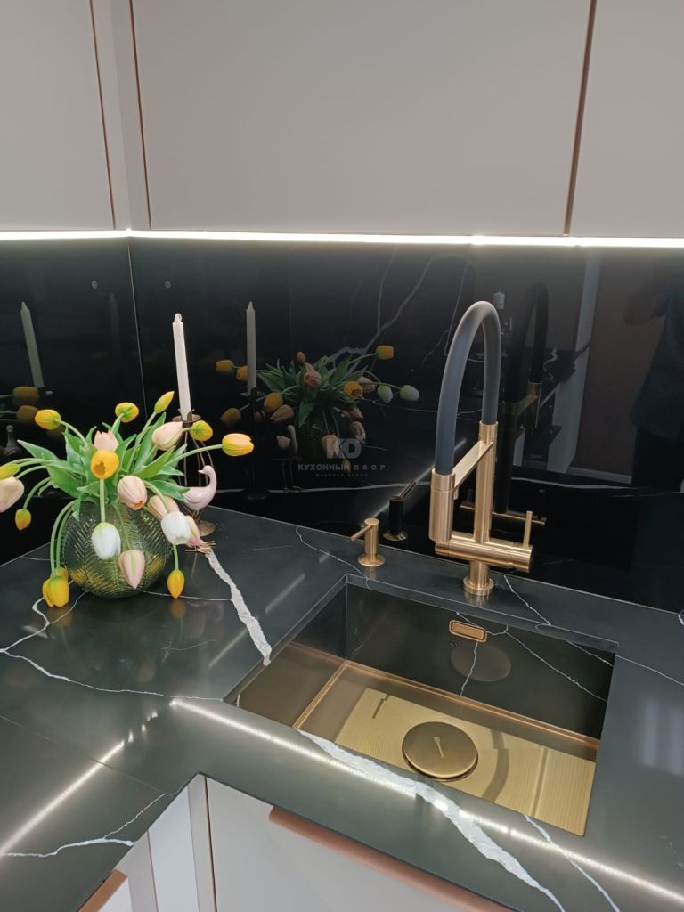 Столешница кварцевый агломерат Avant Quartz с мойкой Мойка ОМОIКIRI «Kasen» подстольного монтажа.