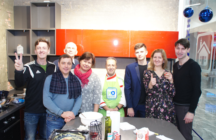 Гости салона смогли не только поучиться у мастера, но и вместе с ним приготовить изысканные шедевры европейской кухни. Синьор Фелистаде приготовил салат Тар-тар из лосося с манго на подушке из черного риса, а также пасту с кремом из цукини с королевскими креветками. Всё это подавалось с шампанским и ароматным глинтвейном. Мастер-класс получился в прямом смысле «вкусным и с огоньком». Не верите? Взгляните на фото и убедитесь сами!