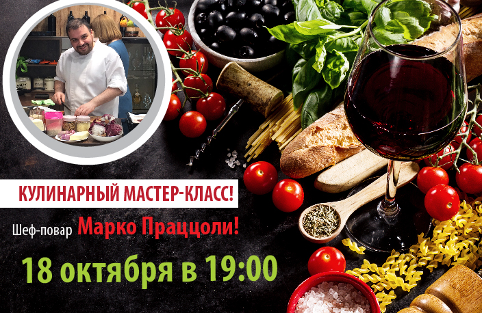 Готовить для Вас будет не кто иной, как личный повар Константина Райкина и шеф ресторана «Райкин Плаза», Марко Проццоли! Для этого мастер-класса он специально подготовил два чудесных угощения – тыквенный капкейк и пасту с креветками и цукини! Оба блюда Марко с удовольствием приготовит вместе с Вами! А для поднятия настроения угостит Вас бокалом итальянского игристого вина!