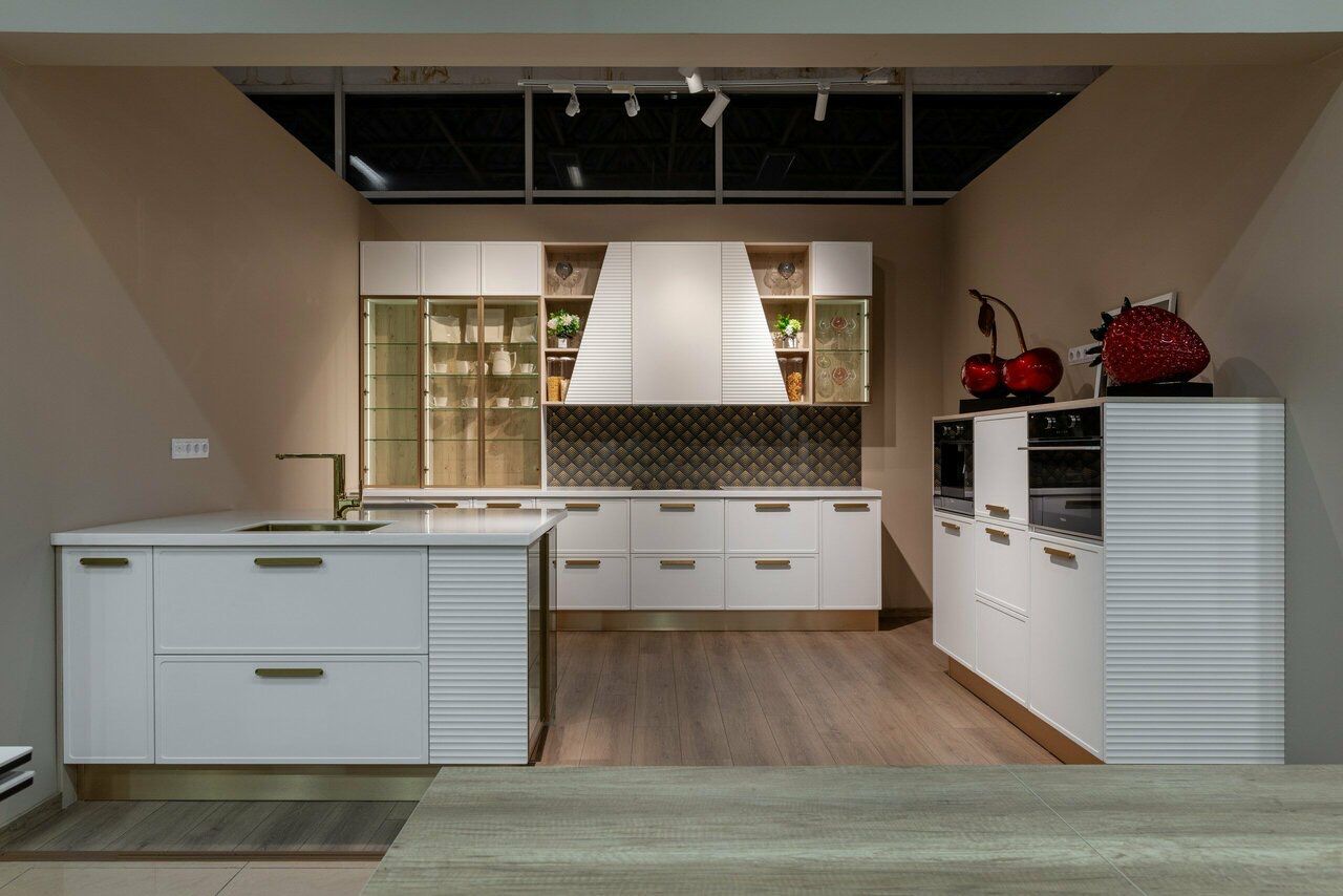 Обращаем Ваше внимание, что цена за погонный метр включает в себя: фасады выбранной категории, влагостойкую столешницу HPL (Германия) высокой прочности, корпуса ЛДСП Egger (Германия) с кромкой ABS, ящики с доводчиками , петли с доводчиками, ручки, алюминиевый поддон в стол под мойку, сушка (Италия), цоколь Volpato (Италия). Из расчета в размере 2400 мм.