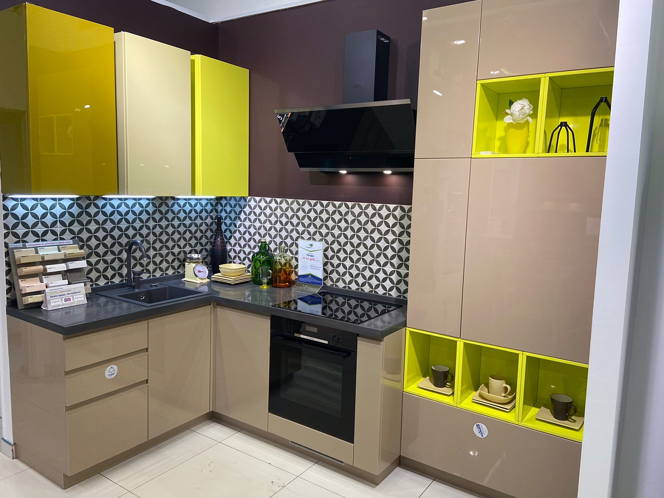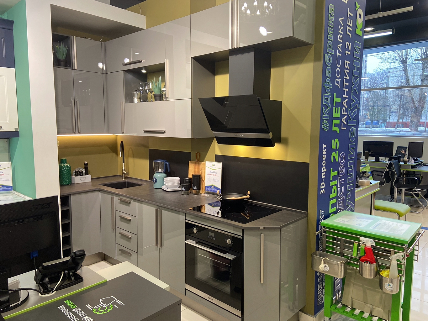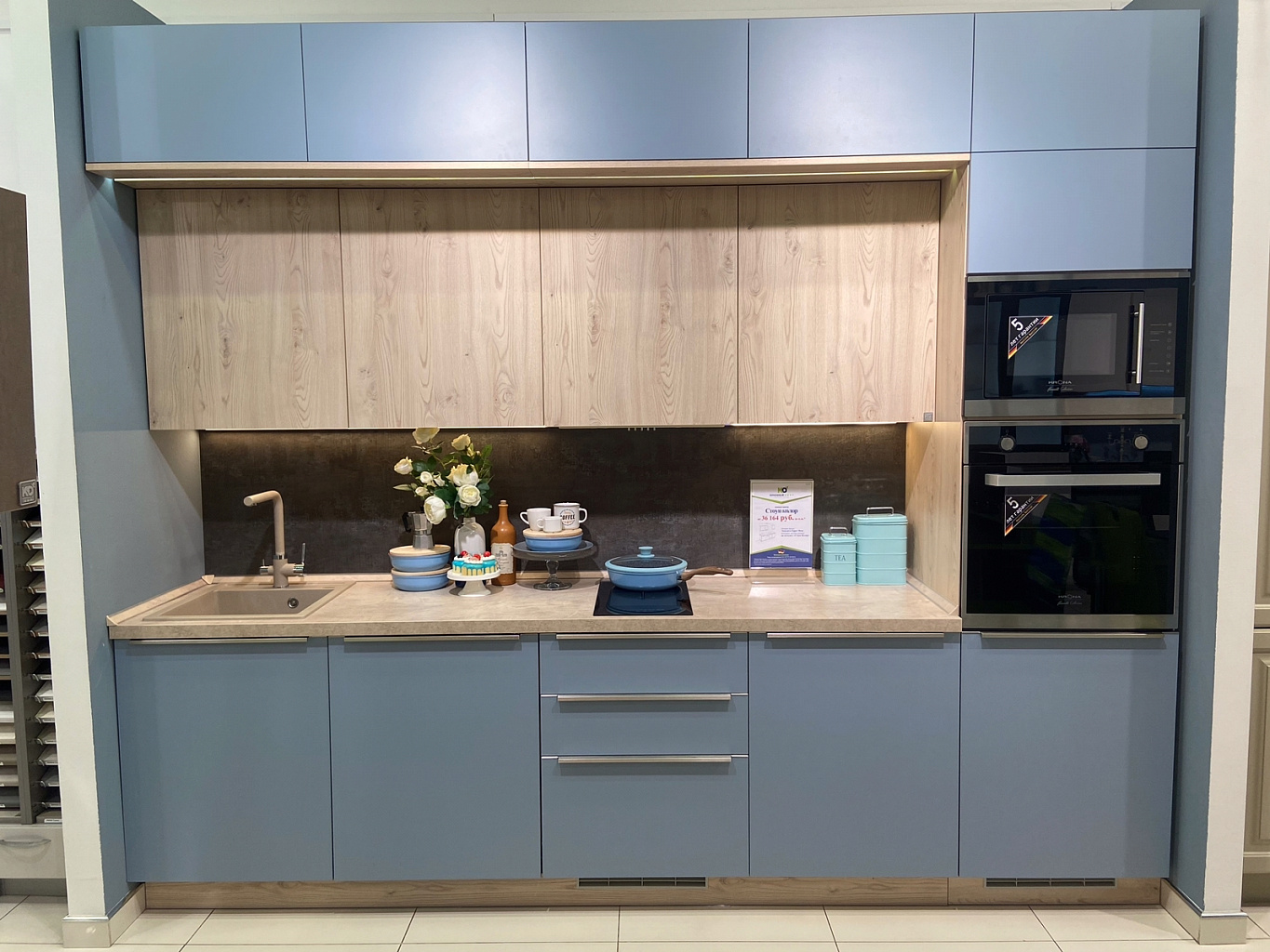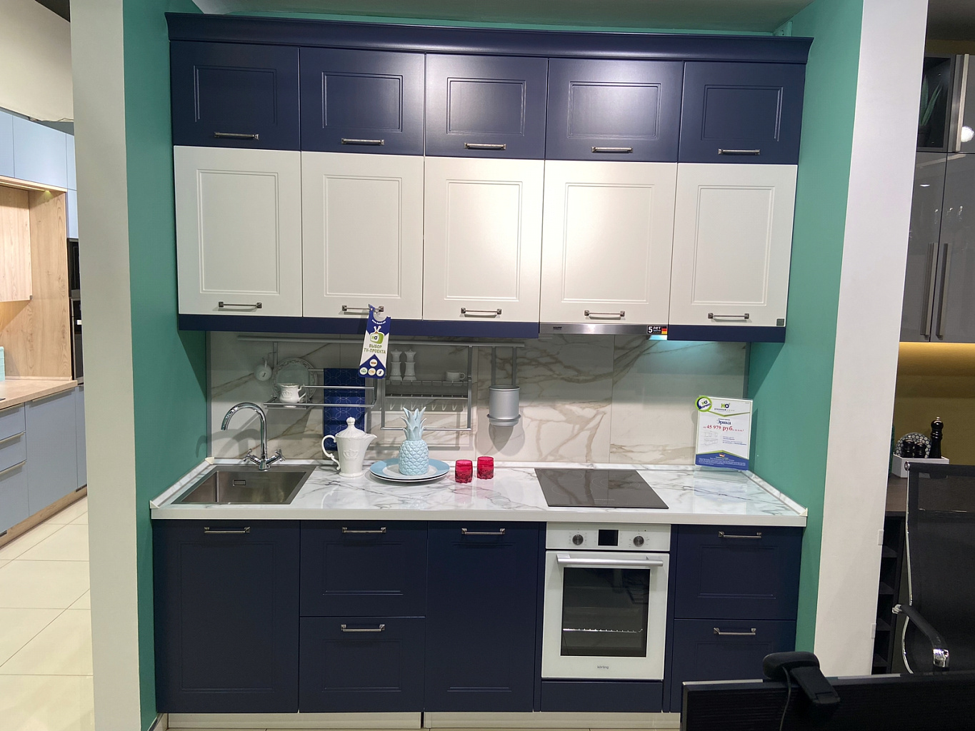 Мы регулярно обновляем образцы в наших салонах. По этой причине кухни из виртуального тура не всегда соответствуют моделям, которые находятся в салоне на данный момент.