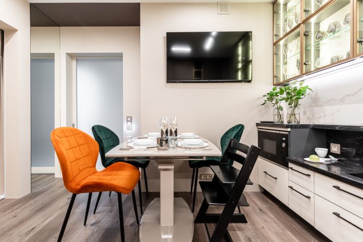 Технически «Ханна Натив» также «на высоте». Помимо СВЧ здесь присутствуют: встроенный холодильник, скрытая вытяжка, посудомоечная машина, мощный духовой шкаф, варочная панель и множество удобных аксессуаров. В наличии есть всё, чтобы каждый из членов семьи получал от кулинарного творчества максимум удовольствия!