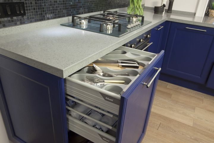 Синяя кухня с светлой столешницей ("Дачный ответ" от 14.04.13)